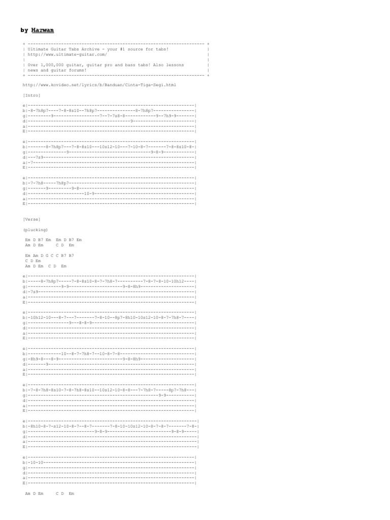 Cinta Tiga Segi Tab Hazwan Guitar Chords